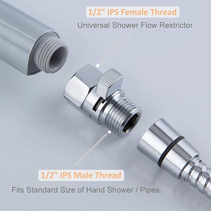 - MULTI-PURPOSE: effectively water-saver, male and female threads both are 1/2"IPS , fits any standard size shower heads/pipes.