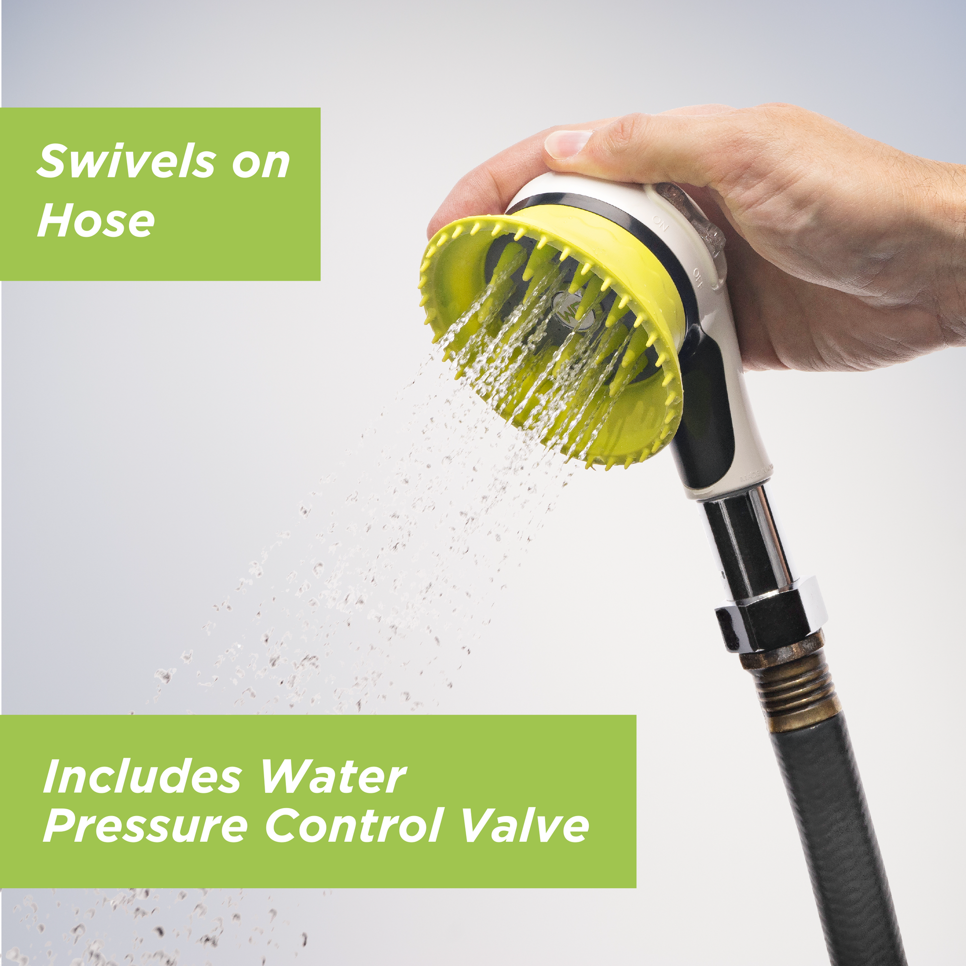 - PRESSURE CONTROL VALVE: This outdoor garden hose sprayer brush head comes with an adjustable water pressure valve. Even outside, you can control how fast you want the water to come out! Massage your dog and keep them calm with this hose nozzle attachment.