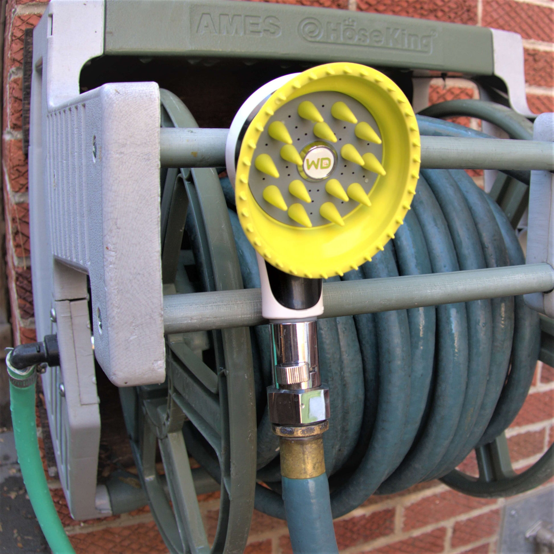 - HIGH QUALITY: This outdoor grooming brush comes with the patented Wondurdog shower brush with patented splash shield and metal garden hose connector for a sturdy and leak-free connection. This dog bath brush is built for the outdoors (no plastic connectors here) so don't worry about its durability when outside.
